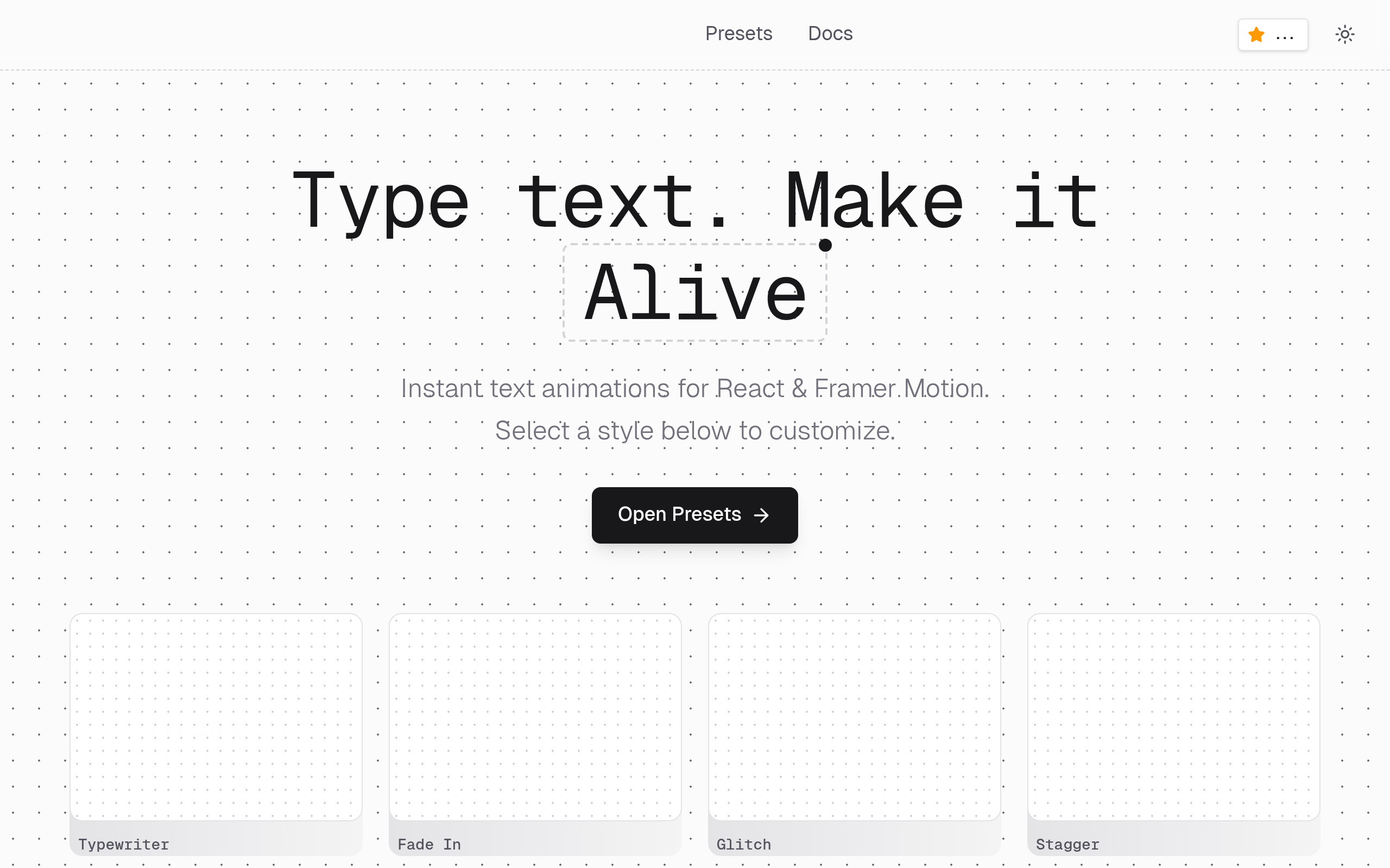 Clover provides instant text animations for React and Framer Motion, allowing developers to easily integrate dynamic text effects into their applications. It offers zero-config, production-ready code with real-time control over animation parameters like delay, stagger duration, and easing curves. The project is proudly open-source, encouraging contributions and providing pre-built styles for various text animations.