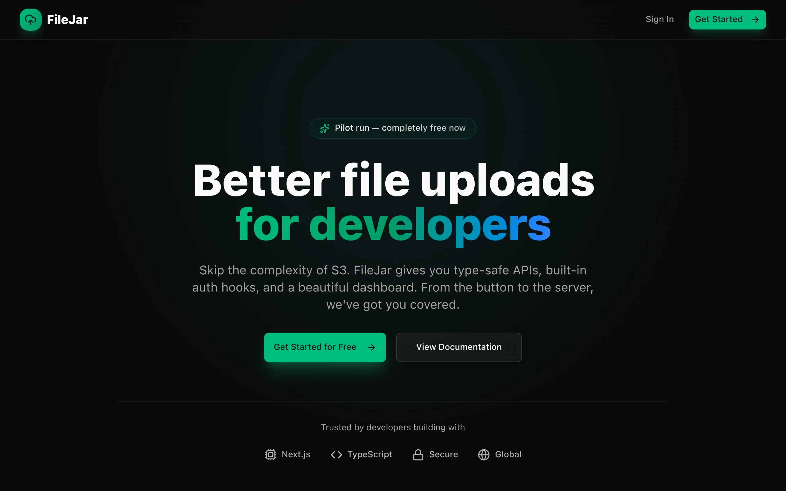 FileJar offers straightforward file hosting for developers, though no further information about its features or functionalities are available from the provided website content.