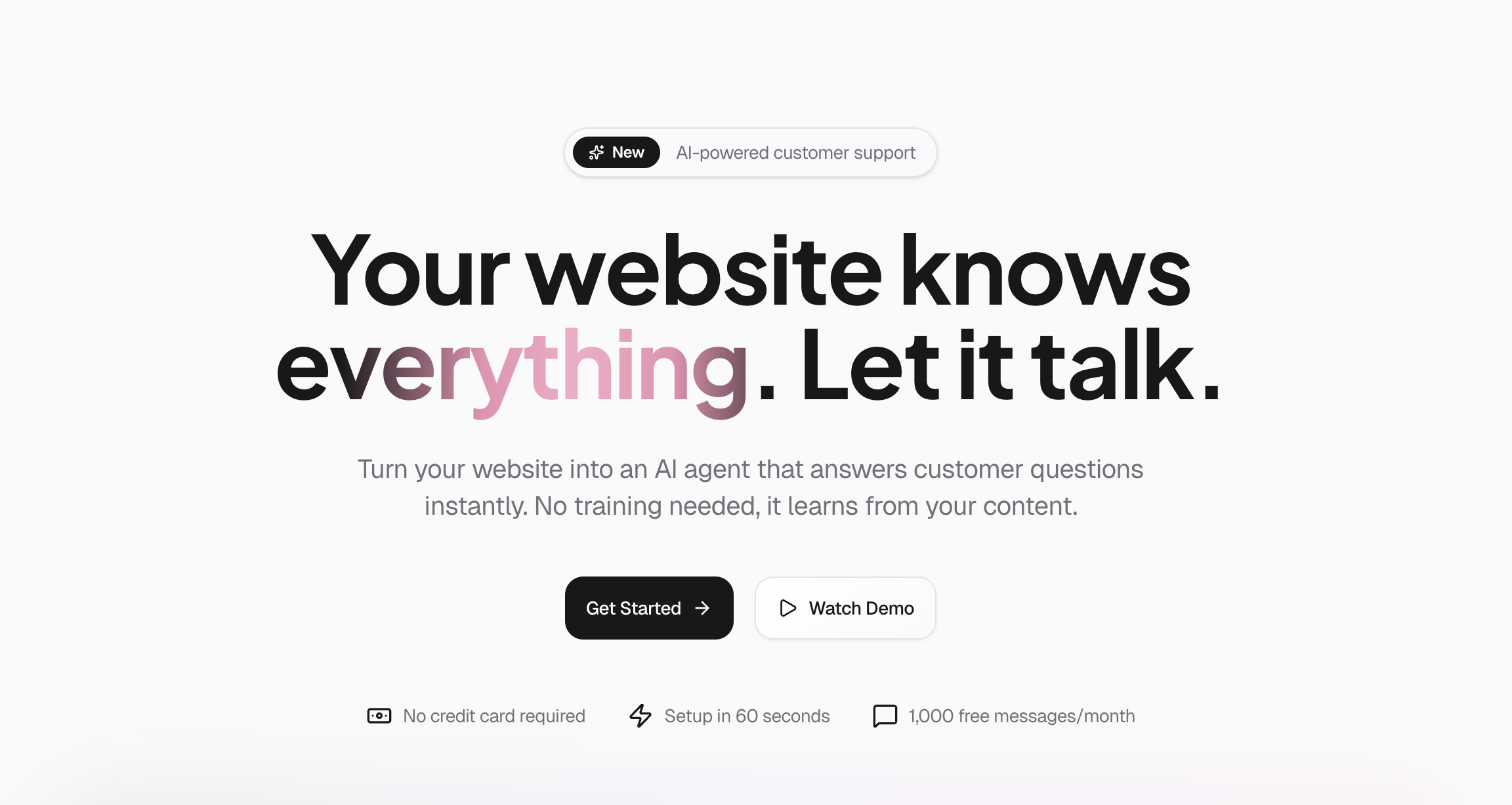 Kya is an AI chat widget that integrates with your website to provide instant customer support. It learns from your website content, allowing it to answer customer questions 24/7 without any training required. It offers features like lead capture, human handoff, and enterprise-level security.