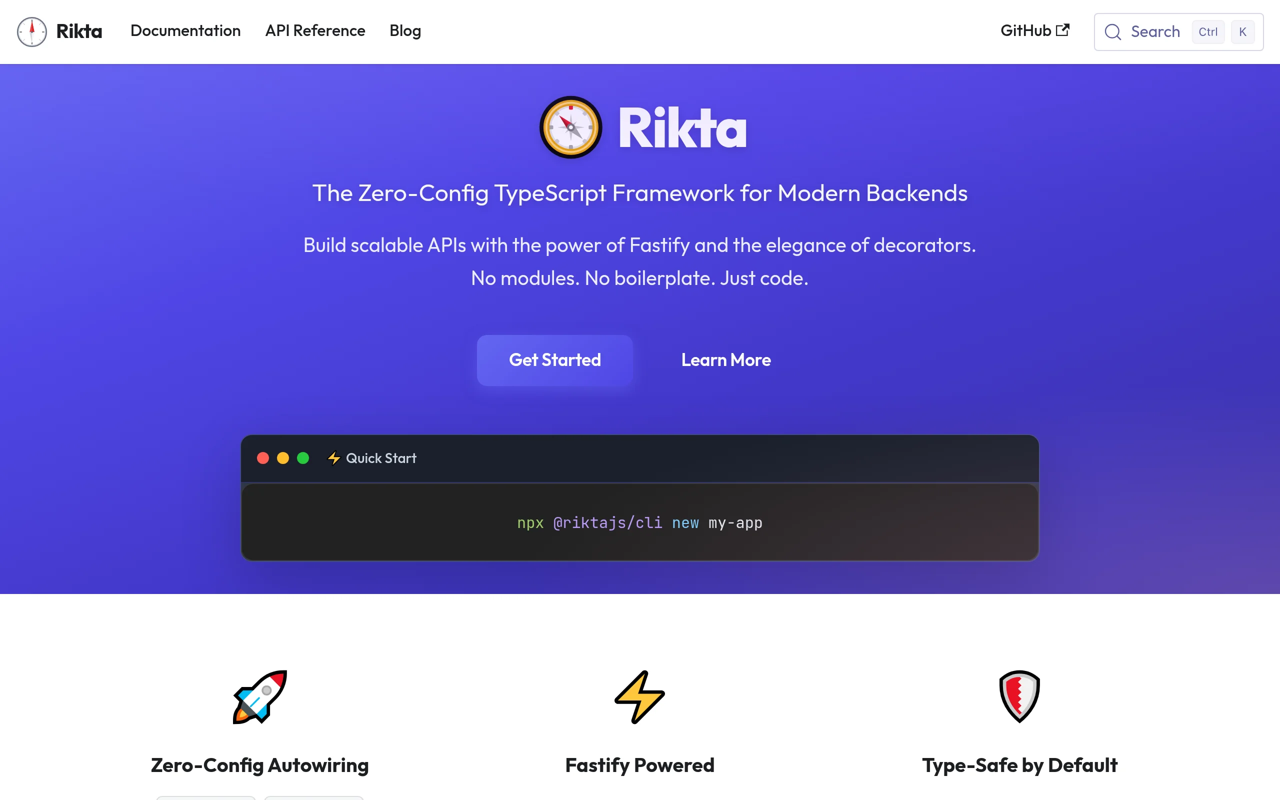 Rikta is a zero-config TypeScript framework built on top of Fastify. It features autowiring, native Zod integration for type-safe validation, and a powerful DI container. Rikta allows developers to quickly scaffold and develop modern backends with features like hot reload and production builds.