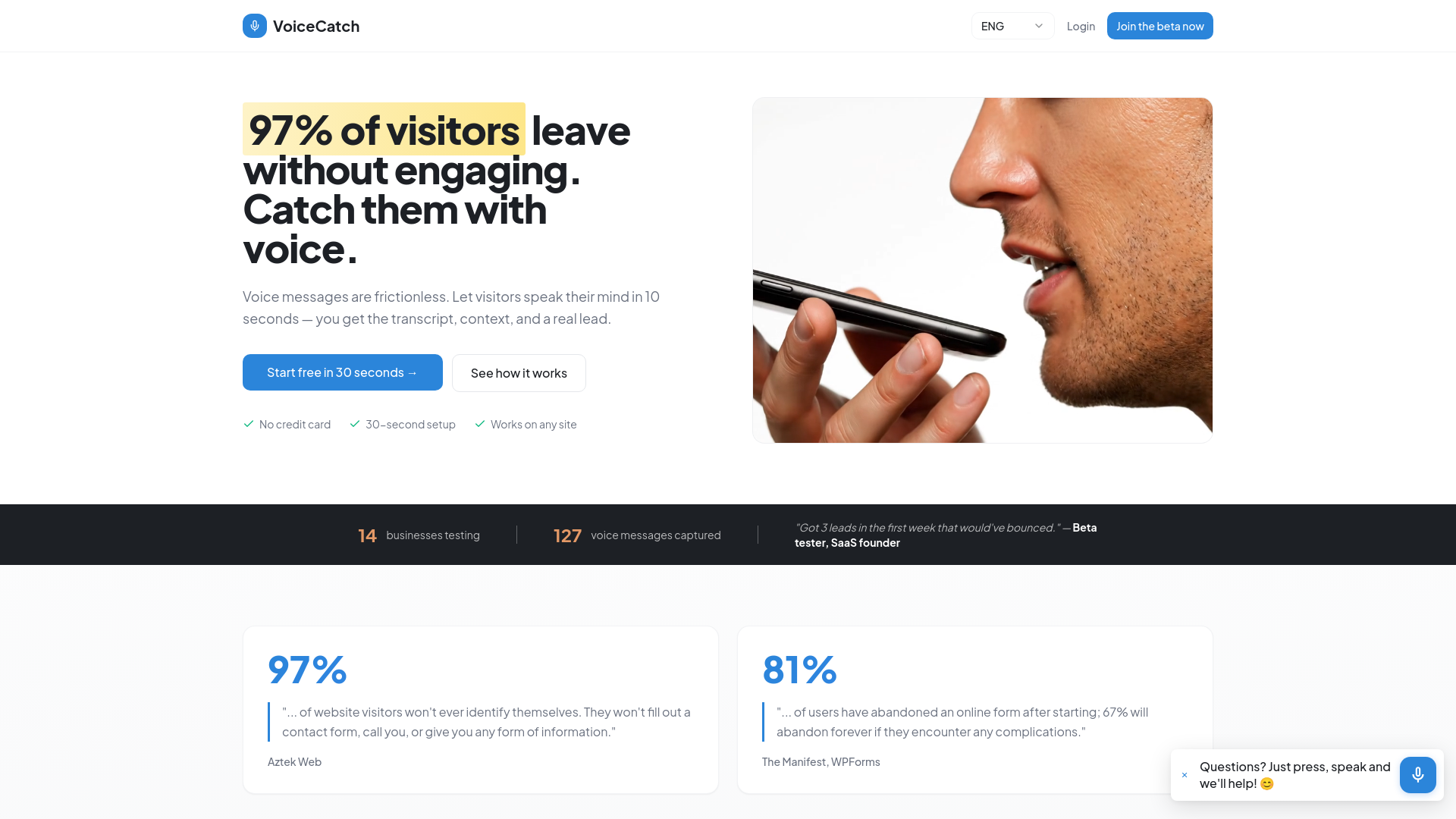 VoiceCatch allows you to add a voice widget to your website, enabling visitors to leave voice messages. These messages are then transcribed and sent directly to your dashboard, making it easy to manage and respond to feedback or inquiries.